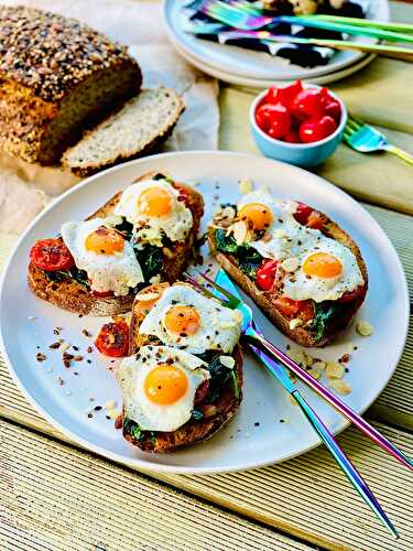 This open sandwich with quail eggs, salmon, spinach and cherry tomatoes can make the perfect start to any day.
