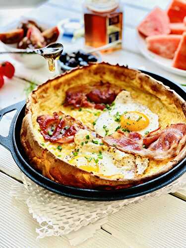 A breakfast like these Dutch baby pancakes topped with bacon and eggs is a truly ultimate breakfast, brunch or even dinner.