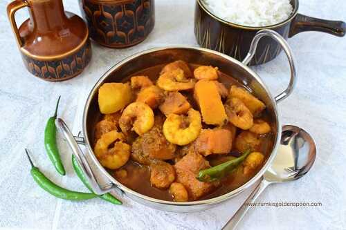 Kumro chingri aka misti kumro diye chingri is a popular misti kumro recipe.