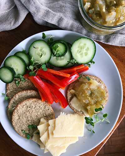 A great way to use up the last of the green tomatoes in your garden! Green tomatoes are great paired with apples as they are just coming into season, and they also add a touch of sweetness to the chutney.