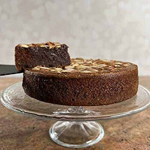 Toasted almonds and dark chocolate combine to make a flourless chocolate and almond cake that's rich and fudgy, with a brownie-like texture and a hint of almond crunch.