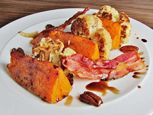 This warm roasted cauliflower, butternut squash and bacon salad is perfect for the cooler autumnal weather.