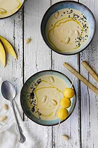 Tasty fresh summer soup with a fruity touch, a variation on the local Spanish "ajo blanco" soup.