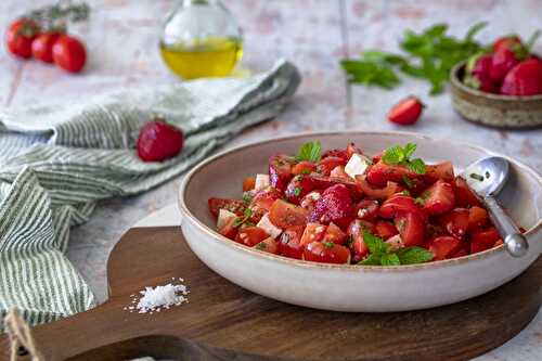 Apricot and peach in combination with tomato and Mozzarella, serve cool and you have a fantastic fresh summer salad.