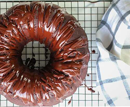 A rich, deeply flavored, chocolately cake with a delicious sweetness from sugary roasted beets, drizzled with chocolate glaze.