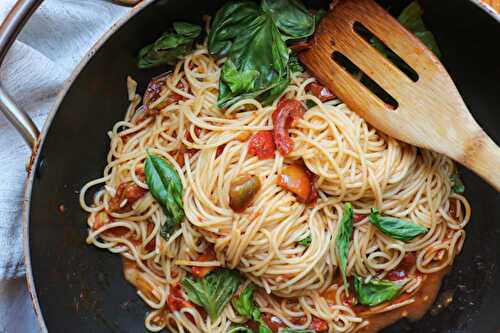 A light, buttery sauce with fresh, ripe summer tomatoes and lots of fresh basil.