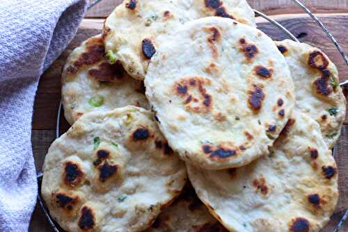 An easy recipe for no-yeast skillet flatbread, flecked with bright, oniony scallions.