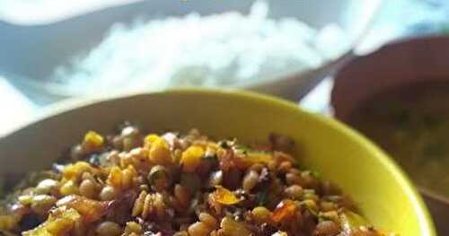 A dry and lightly-spiced fresh-tasting dal and vegetable curry from south India.