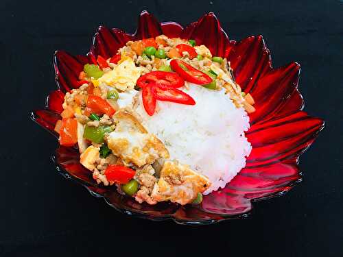 Fried Eggs with Minced Pork & Vegetable Topping