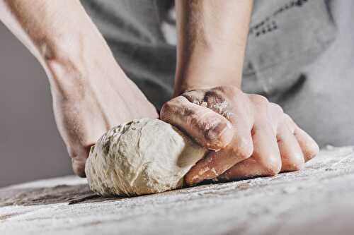 Kneading is a step in bread and pasta making where dough ingredients (flour and water) are mixed in order to strengthen the end product.
