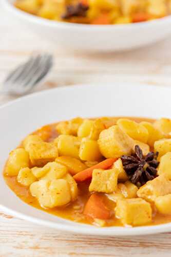 Rich and comforting red lentil and chickpea curry with turnip and winter squash.