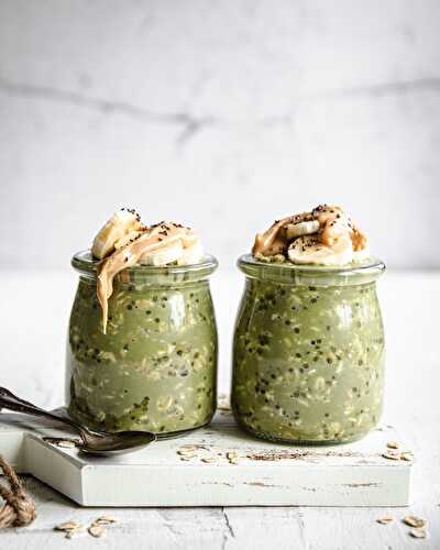 The ultimate healthy make-ahead breakfast, these matcha overnight oats use rolled oats, chia seeds, yogurt, almond milk and maple syrup for the perfect start to your day.