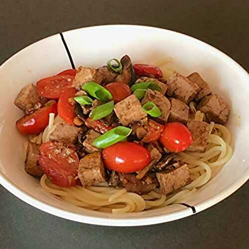 Are you looking for a quick vegetarian lunch during the week? This spaghetti with tofu and shiitake is ready in only 20 minutes.