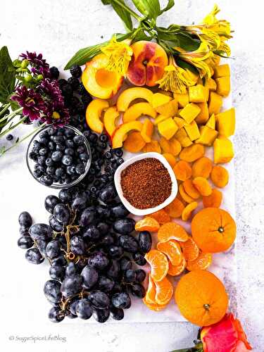 This dazzling fruit board is super simple to assemble and so eye-catching! Just grab your favorite orange and purple fruits and assemble!