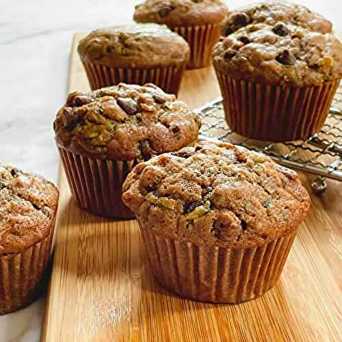Get your greens and satisfy your sweet tooth with these chocolate chip pecan zucchini muffins! They are packed with flavor from warm spices like cinnamon, cardamom and nutmeg.