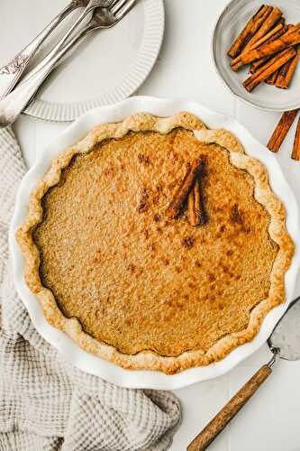 Delicious cinnamon pie recipe with a creamy and sweet cinnamon vanilla filling on a crispy pie crust (for a 9 inch/ 22 cm pie plate - 10-12 slices)