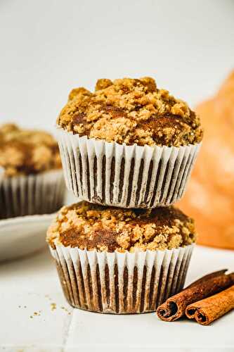 Delicious recipe for super moist pumpkin muffins with a crunchy streusel topping (makes 12 - 14 muffins)
