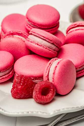 Delicious raspberry macarons recipe with white chocolate and raspberry ganache (for 20 macarons)