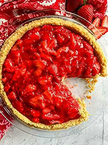 With no Jell-O fillers, this strawberry pie recipe is made simply with fresh strawberries in an easy homemade shortbread cookie crust.