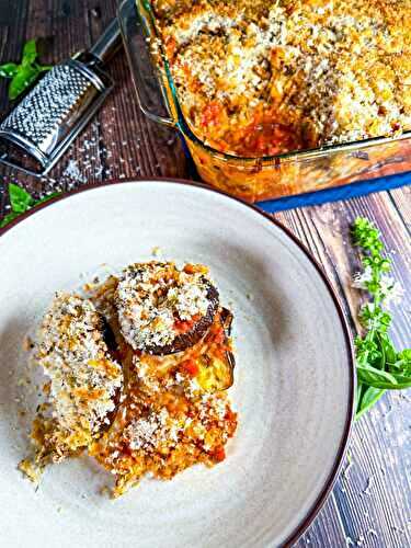 Layers of eggplant, marinara, and mozzarella cheese are baked and topped with crispy seasoned breadcrumbs.