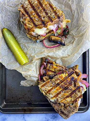 A hot balsamic portobello and swiss chard panini on a chilly day sounds just about right.