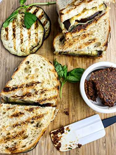 This grilled eggplant panini with sun-dried tomato olive tapenade will take you on a trip to Italy! Recipe by Grace Vallo.