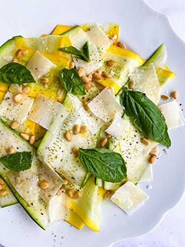 Shaved Summer Squash Carpaccio with lemon and toasted pine nuts is simple and delicious.