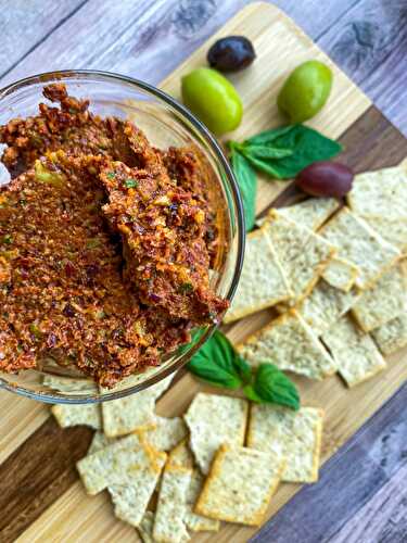 I keep sun-dried tomato olive tapenade pesto on-hand, so I can bring it to picnics, toss it in pasta or on sandwiches.