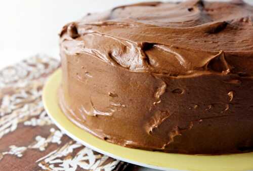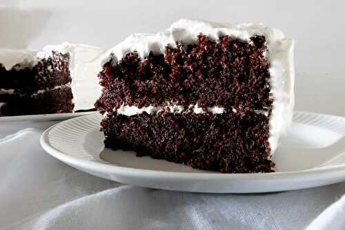 A glorious chocolate cake with warm spices topped with a luxurious frosting of mascarpone and whipped cream.