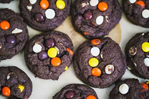 Best combination - 2 kinds of chocolate and peanut butter right here! These Reese's Peanut Butter Chocolate Fudge Cookies have fun-loving peanut buttery Reese's pieces and white chocolate chips bursting all over these seriously fudgy chocolate cookies.
