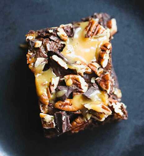 Sinfully divine fudgy Turtle Brownies infused with a layer of caramel gooeyness and then topped with lots of chopped pecans, caramel and chocolate chunks.