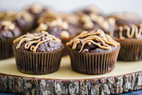 Healthy indulgent Chocolate Peanut Butter Muffins are the perfect sweet treat for a quick snack or breakfast on the go! YUM!