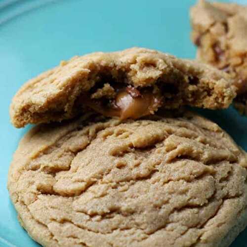 Outrageous soft-batch Peanut Butter Cookies filled with Lindor Caramel Truffles.