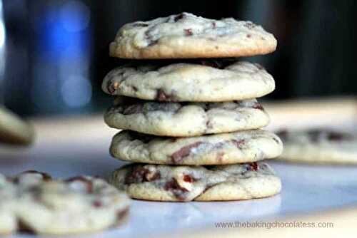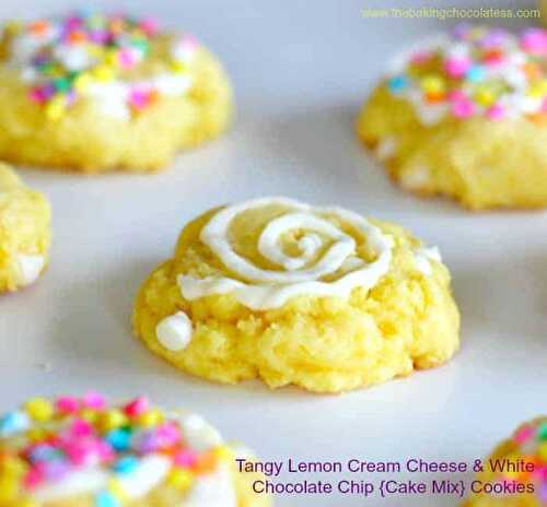 A tangy lemon cream cheese cookie sprinkled with mini white chocolate chips.