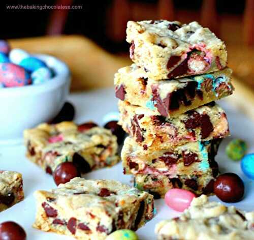 You need to hop on over and make these moist, rich blondie bars stuffed with chunks of Whopper Speckled Eggs, Whoppers and chocolate chips.