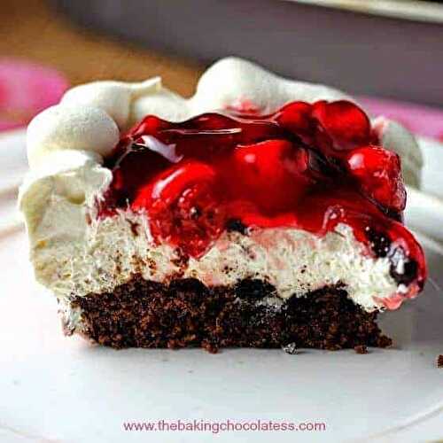 A decadent, red velvet brownie all decked out with rich, chocolate satin frosting and sprinkles of dark European chocolate.