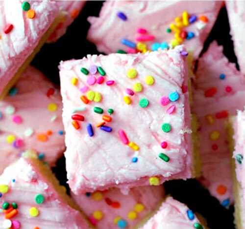 Perfectly, simple, delicious, traditional sugar cookies transformed into soft, thick sugar cookie bars frosted with a cherry buttercream frosting that will knock your socks off!