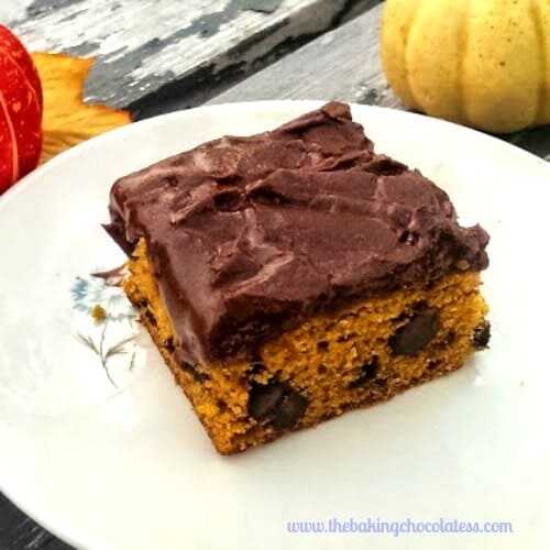 These lovely pumpkin bars will make you want to jump for joy, chocolate chips and frosting included!