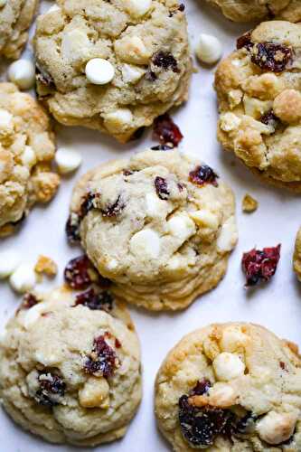 These cookies are thick, soft, and chewy, exactly what you want right? They're not too sweet, but it's heaven when you get that taste of sweet white chocolate, tart cranberries and a bit of salty macadamia nuts.