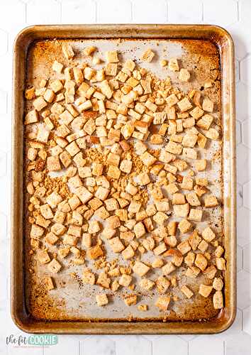 Top your favorite summer salad with these flavorful dairy free and gluten free croutons! These homemade croutons are perfect for salads, soups, or just for snacking.