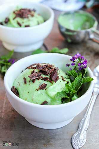 This Peppermint Chocolate Chip Nice cream is sweet and creamy with a hint of peppermint and lots of chocolate pieces.