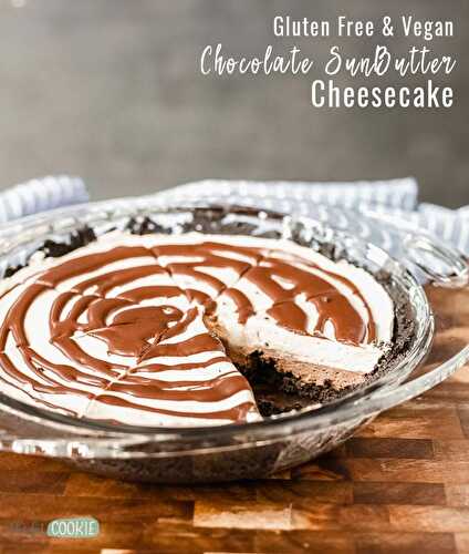 Indulge in this layered Gluten Free Chocolate SunButter Cheesecake, it's allergy friendly, vegan, peanut free, and easy to make!Vegan, Gluten Free; Free of: peanuts, eggs, soy