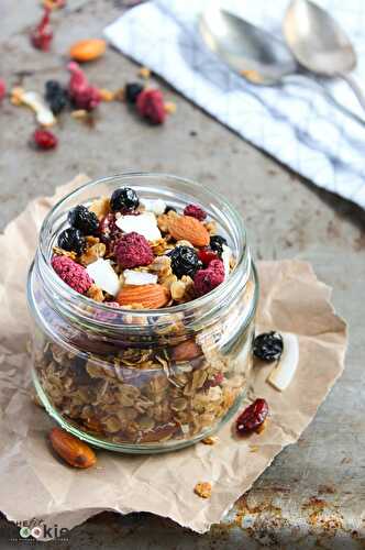 This Gluten Free Summer Berry Granola is sweet, crunchy, and tastes a little like cookies to brighten your morning! It can also be made nut free.