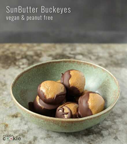If you have food allergies, don't miss out on treats! You won't miss the PB with these SunButter Buckeyes (plus they're gluten free and vegan)Vegan, peanut free, gluten free.