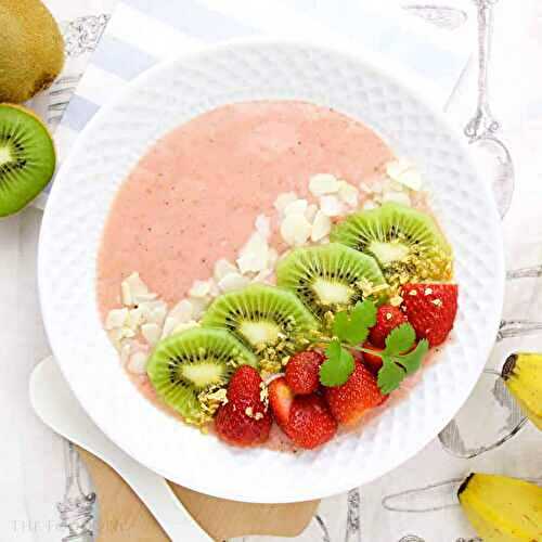 Kiwi and strawberry smoothie bowl is a smooth way to refill your vitamin level and start the day fresh.
