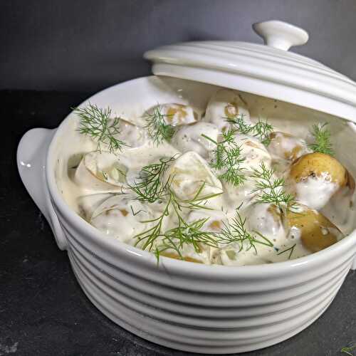 A fragrant slow-cooked end of summer dish with courgettes, the last of the season's new potatoes and lemon complemented by good olive oil