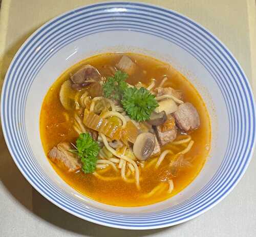 An easy, nutritious winter soup with tomatoes, vegetables and red lentils spiced up with paprika and hot sauce