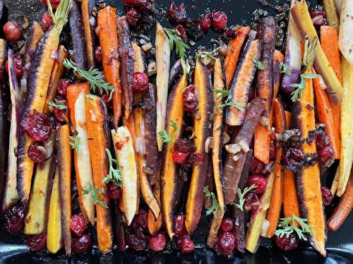 Pears, poached in red wine and balsamic, are stuffed with toasted pecans, blue cheese, cranberries and fresh thyme.