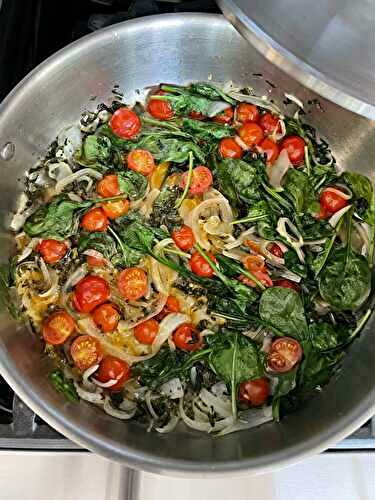 Fish, scallops, shrimp and clams braised in Mediterranean spices with three kinds of olives, tomatoes and shallots.