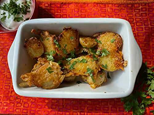 Fingerling potatoes roasted with seasoned Parmesan cheese and baked to a crispy golden brown.